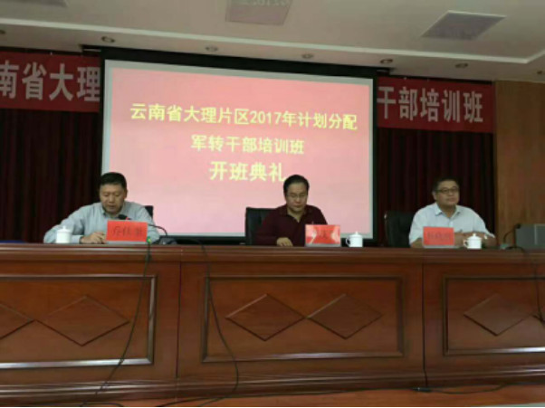 8月8日,云南省大理片区2017年计划分配军转干部集中培训班在大理州委党校开班。州人力资源和社会保障局李茂生副局长,州委党校杨晓刚副校长出席开班典礼并作了动员讲话,军官转业安置科科长乔佳奎主持开班典礼。