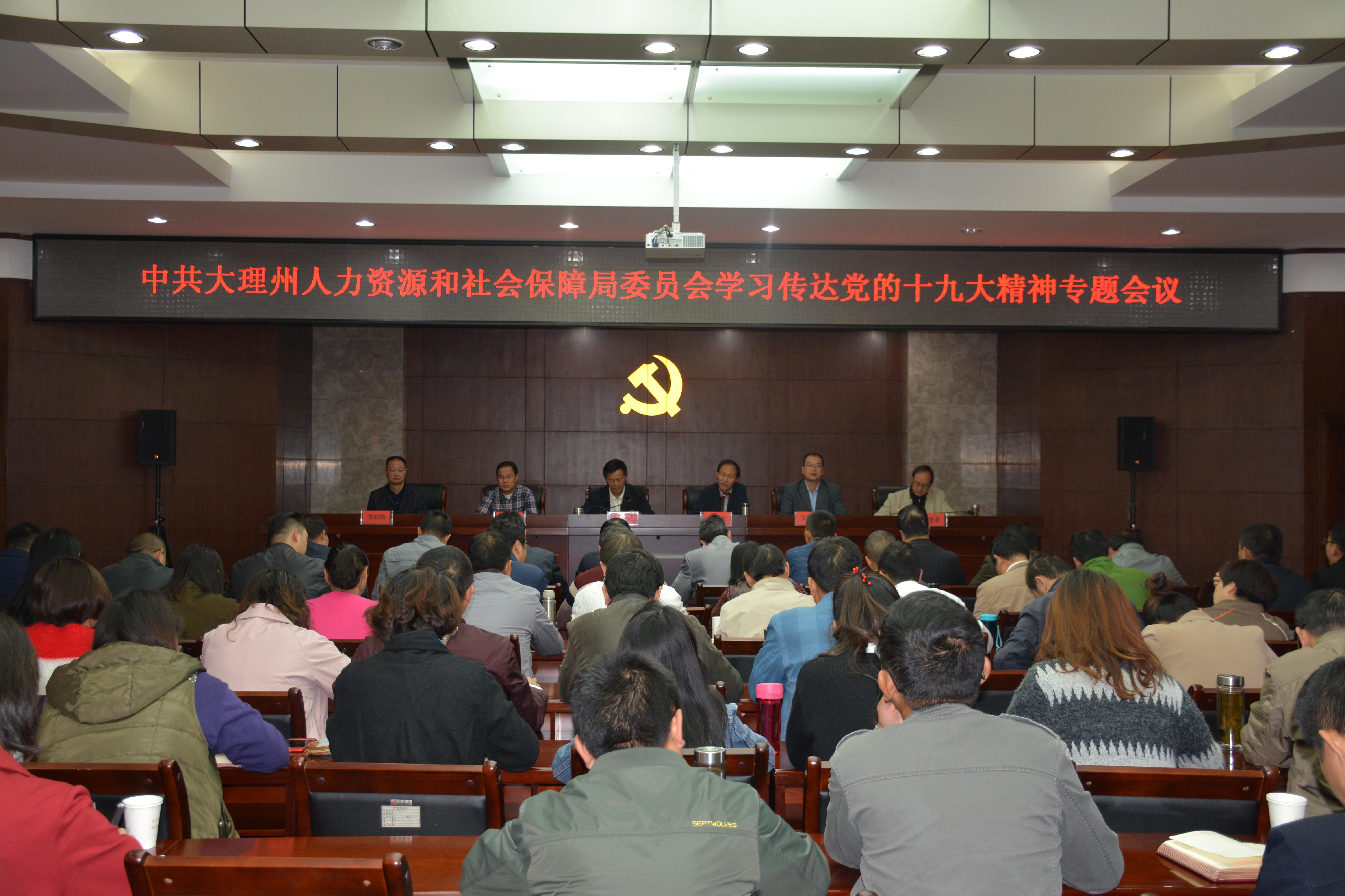 党的十九大召开后,州人社局党委迅速召开了州人力资源和社会保障系统学习传达党的十九大精神的专题会议,由局党委书记、局长杨作云组织大理州人力资源和社会保障系统干部职工专题学习了党的十九大精神传达提纲以及全省、全州领导干部大会精神,并就州人社系统学习宣传贯彻落实党的十九大精神作出了安排部署,掀起了州人力资源和社会保障系统学习、宣传、落实党的十九大精神的热潮,为州人力资源和社会保障系统凝聚共识、干事创业打下了坚实基础。 多层次抓学习。大理州人社系统按照“责任人带头学和干部群众学相结合、网上交流与座谈交流相结合、个人自学与交流讨论相结合”三结合学习要求,采取领导干部亲自讲、党组织负责人带领学、党员大会集体学、党小组分组讨论、个人自学等方式,多层次组织学习,防止“一锅煮、一刀切”和“学习放空”。 多渠道抓宣传。以人社局官网、人社工作微信群、“两学一做”微信群、人社系统宣传简报为宣传阵地,通过征集心得体会、撰写学习报告、开展集中研讨、上报工作信息等方式,多渠道抓好对党的十九大精神的宣传。 多方位抓落实。在州人社局党委学习传达党的十九大精神的专题会议上,局党委书记、局长杨作云在自身研读十九大报告的基础上,对涉及人力资源和社会保障工作的内容作了详细讲解,并提出了“要深入认识党的十九大召开的重要意义,将学习贯彻落实好会议精神作为州人社系统当前和今后一段时期的首要政治任务;立即行动,层层落实,认真学习宣传贯彻好党的十九大精神;坚持全面从严治党,为各项工作开展提供坚强政治保证;以十九大精神为引领,确保年度目标任务全面完成”四点要求,组织全体干部职工深入领会、准确把握、认真落实党的十九大赋予人力资源和社会保障事业的各项任务,全面推进就业、社保、人事人才、收入分配、劳动关系等各方面各领域改革,不断开创全州人力资源社会保障事业改革发展新局面。 www.bet28365365.com 2017年11月1日